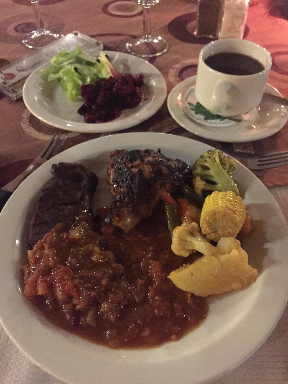 A delicious dinner is served at the lodge, after which guests can relax and enjoy a peaceful evening in the heart of the African wilderness.